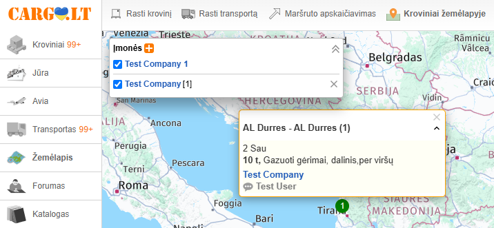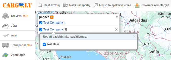 Ši funkcija yra naudinga vežėjams, dirbantiems su tam tikromis patikimomis įmonėmis arba krovinių ekspedijavimo įmonėms, turinčioms filialų įvairiuose miestuose, todėl galėsite pamatyti įmonės krovinius iš visų žemėlapio filialų.